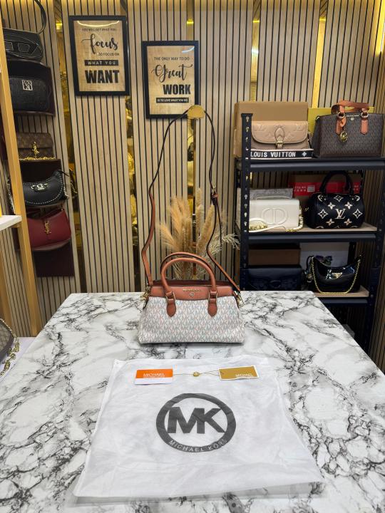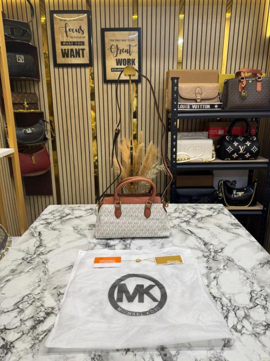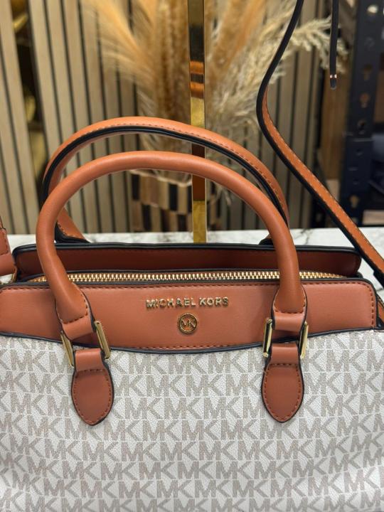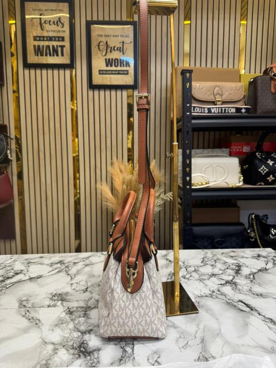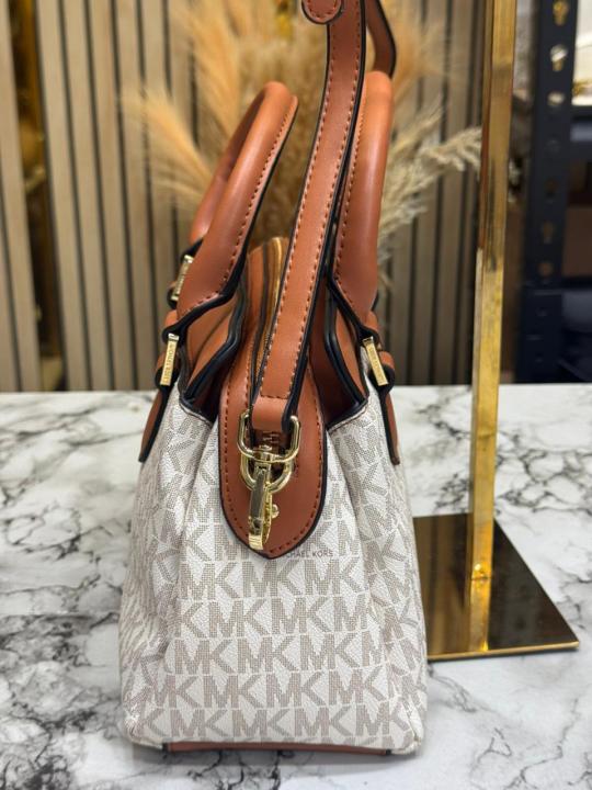 Michael_Kors Verona Signature Satchel Bag With Dust Bag (Beige) (M2387)